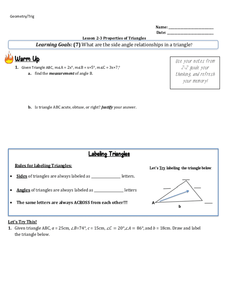 Get the free Geometry Lesson 2-3 Properties of Triangles