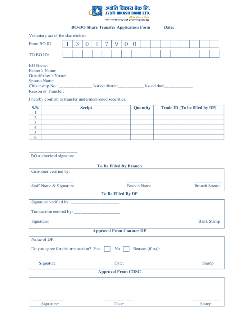 Step-by-Step Guide on How to Fill Out the Bo-Bo Share Transfer Application