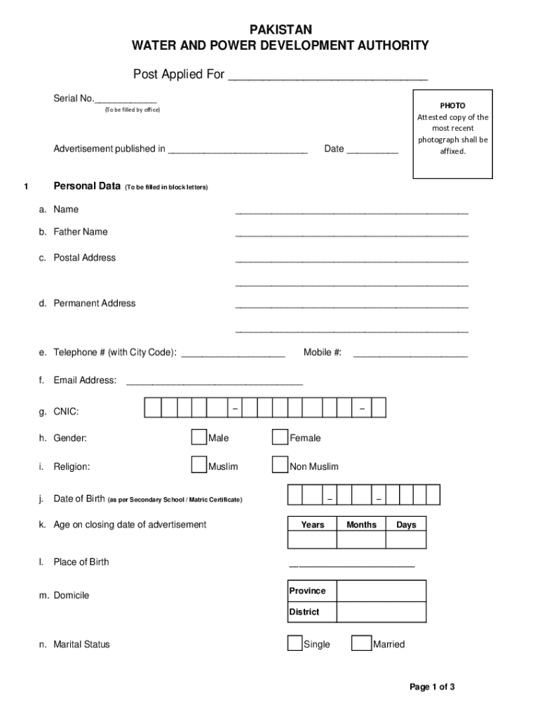 Several important attributes define the Pakistan WAPDA Job Application. Typically, it requires specific fields to be filled out, ensuring that all necessary information is captured for consideration.