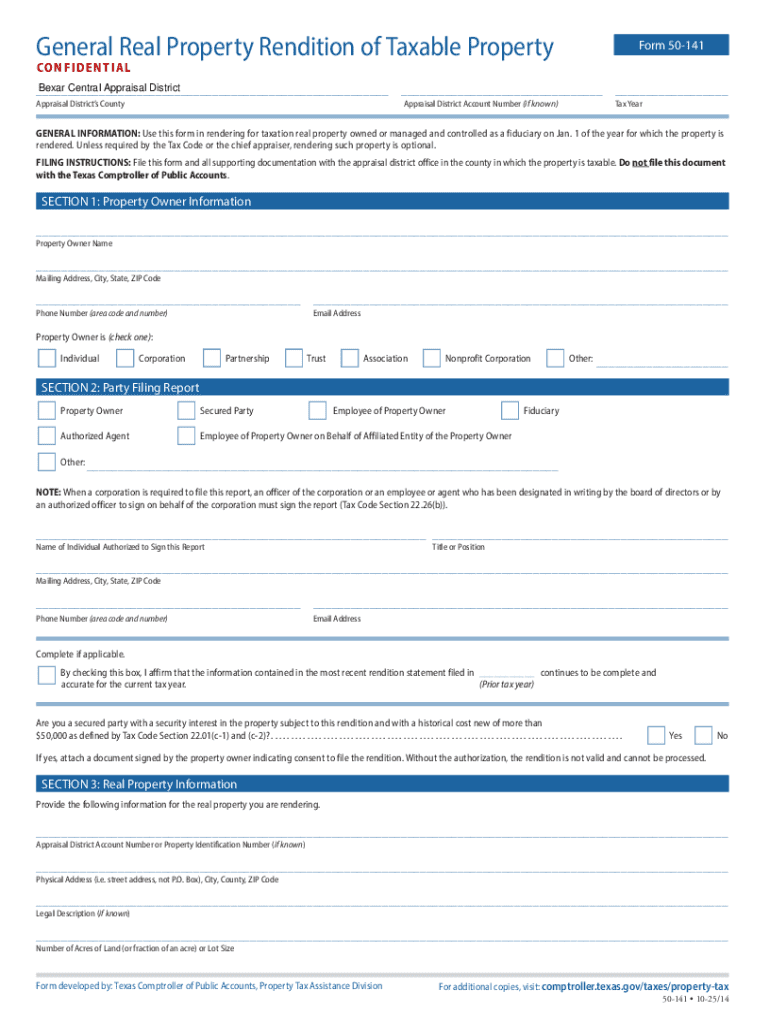 Get the free Texas General Real Property Rendition Form 50-141