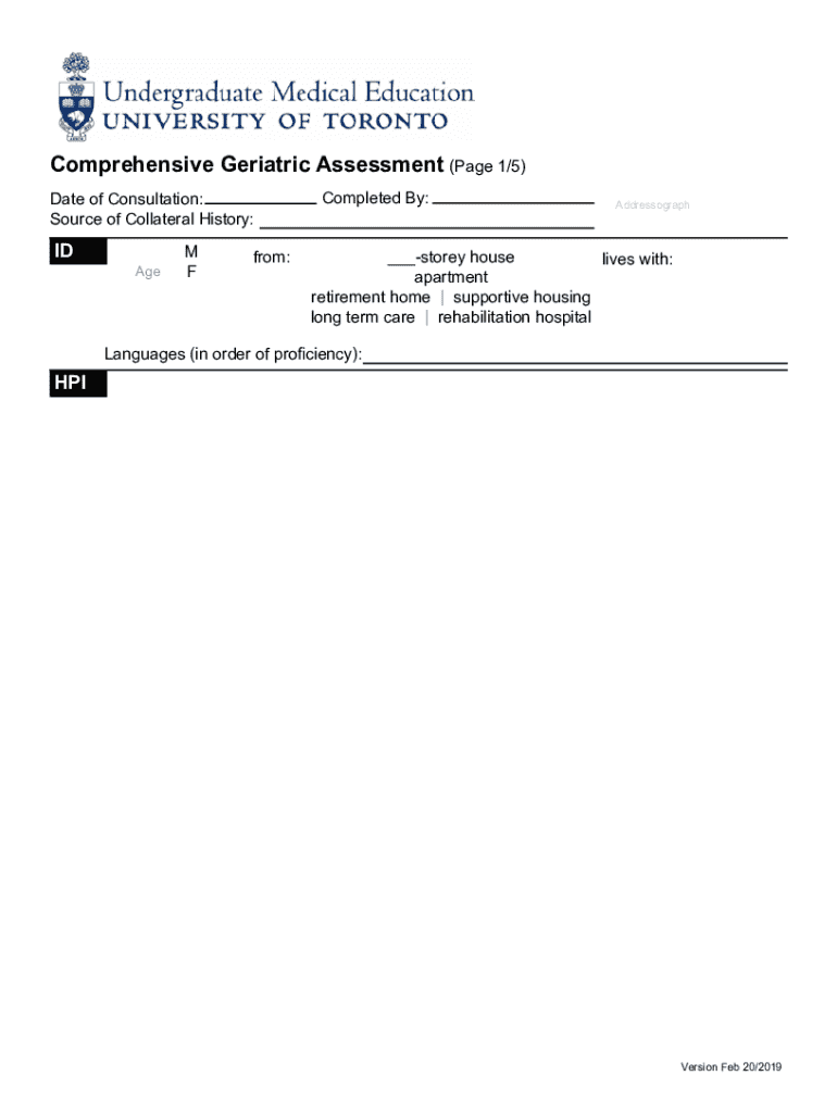 Several critical elements make the comprehensive geriatric assessment form effective. Important sections include: