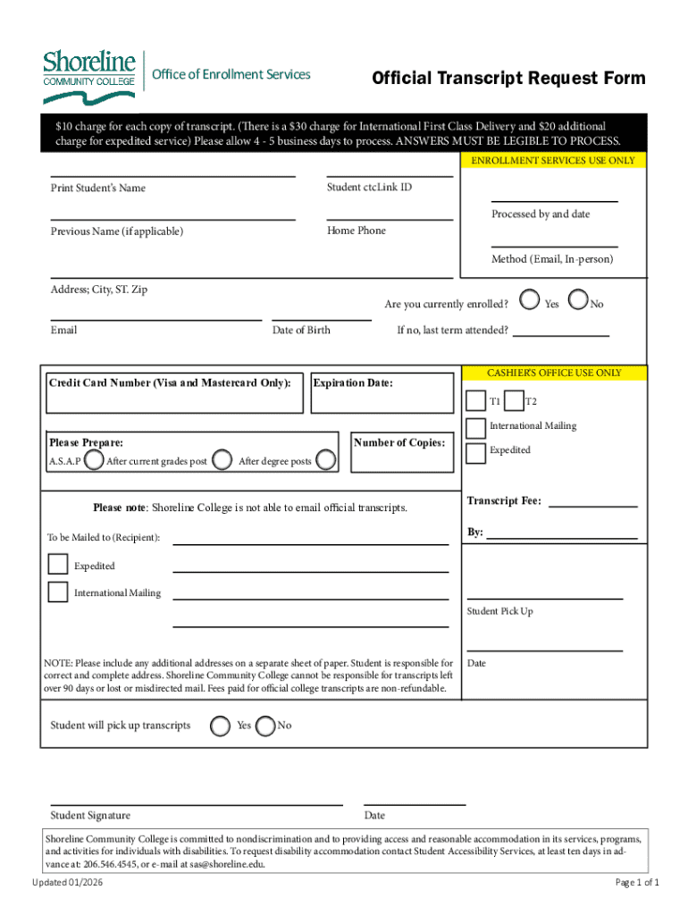 Get the free Official Transcript Request Form
