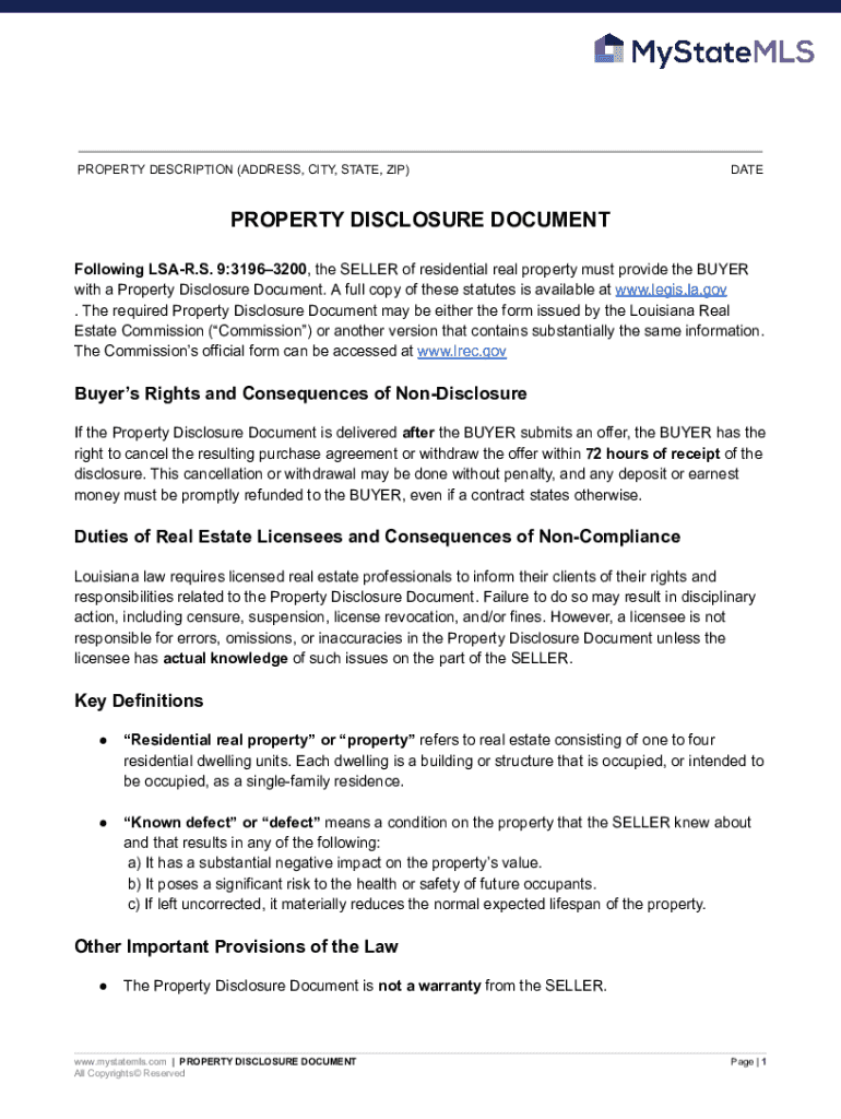 Get the free Louisiana Property Disclosure Document