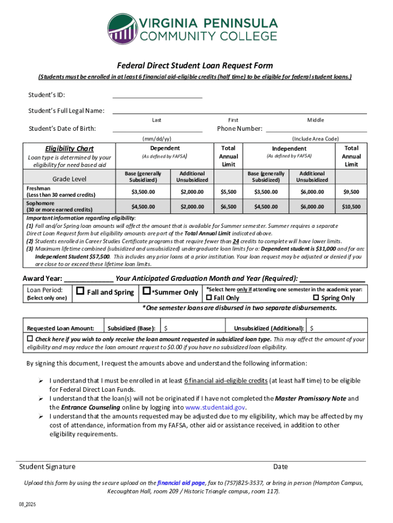 Get the free Federal Direct Student Loan Request Form