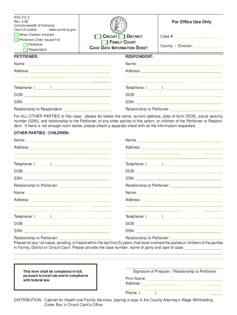 Individuals who might need to file a Kentucky family court case include custodial parents, non-custodial parents, and guardians. Each of these roles may have specific legal interests that necessitate the filing of a case.