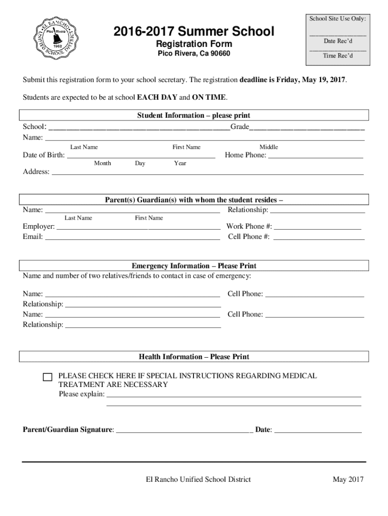 The 2016-2017 Summer School Registration is a form used by students and parents to enroll in summer school programs.