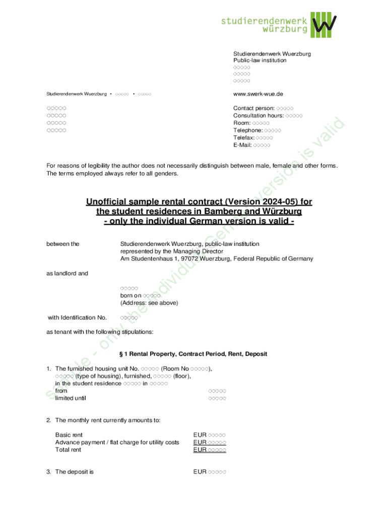 Der Studentenmietvertrag umfasst mehrere wesentliche Bestandteile, die für die Gültigkeit und Effektivität des Dokuments entscheidend sind. Zu den wichtigsten Merkmalen zählen Informationen über Mietpreise, Laufzeiten des Mietverhältnisses sowie Schadens- und Kautionsregelungen. Jedes dieser Elemente spielt eine zentrale Rolle für die Transparenz des Vertrages und den Schutz beider Parteien.