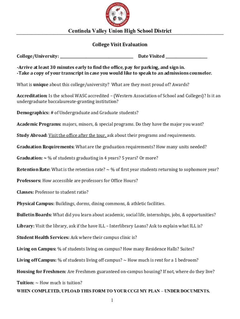 The college visit evaluation form is a crucial tool designed to help students, parents, and educators assess their college visits effectively. This form serves the purpose of recording impressions, observations, and details regarding various colleges, aiding in the decision-making process. By evaluating different campuses systematically, stakeholders can make informed choices about higher education opportunities.