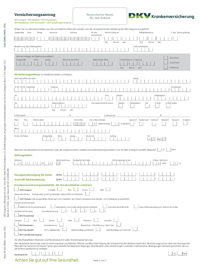 Das DKV Krankenversicherungsantragsformular ist ein Dokument, das von Personen verwendet wird, die eine Krankenversicherung bei DKV beantragen möchten.