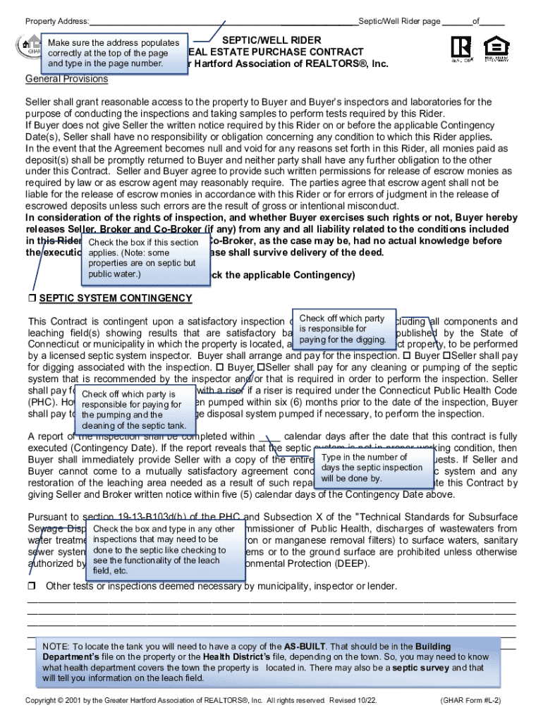 Get the free Septic Well Rider for Real Estate Purchase Contract
