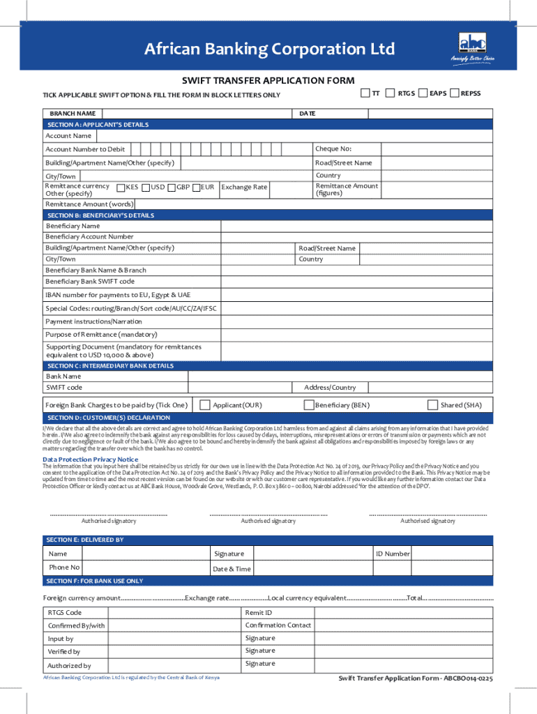 Get the free African Banking Corporation Swift Transfer Application Form