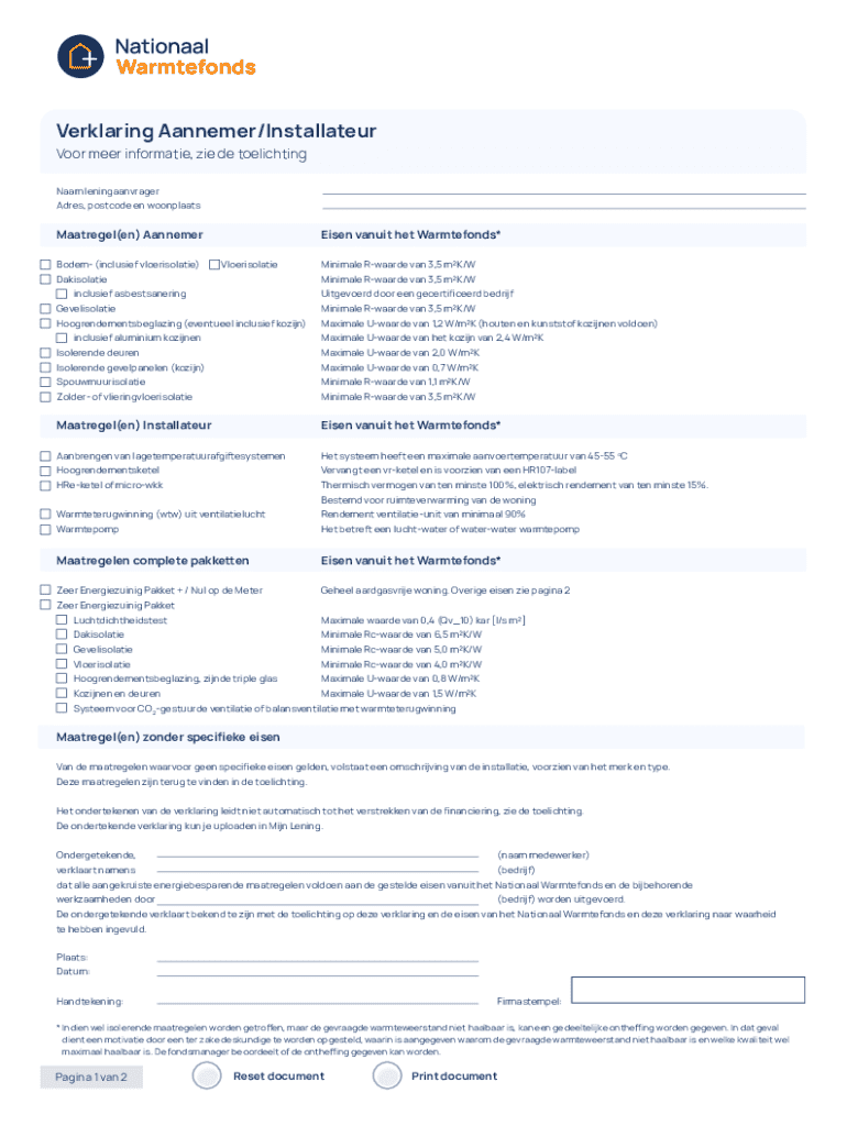 Ga naar de desbetreffende website voor het contractorinstaller declaration form.