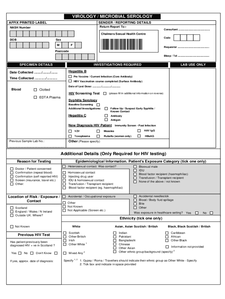 Healthcare professionals conducting viral tests, laboratories analyzing serological samples, and patients seeking diagnostic testing for infections typically need to fill out this form.