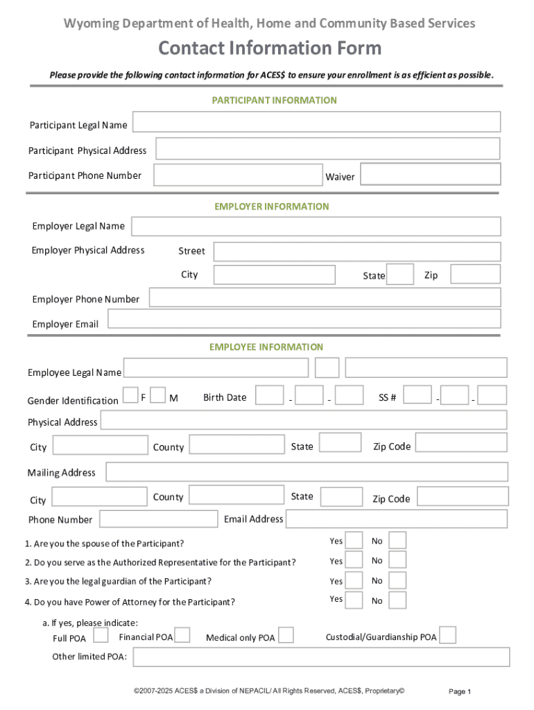 To complete the Wyoming New Hire Reporting form, you need the employee's full name, Social Security number, date of birth, address, and the employer's contact information.