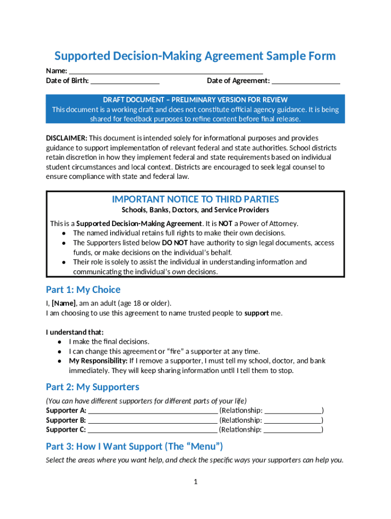 Get the free Supported Decision-Making Agreement