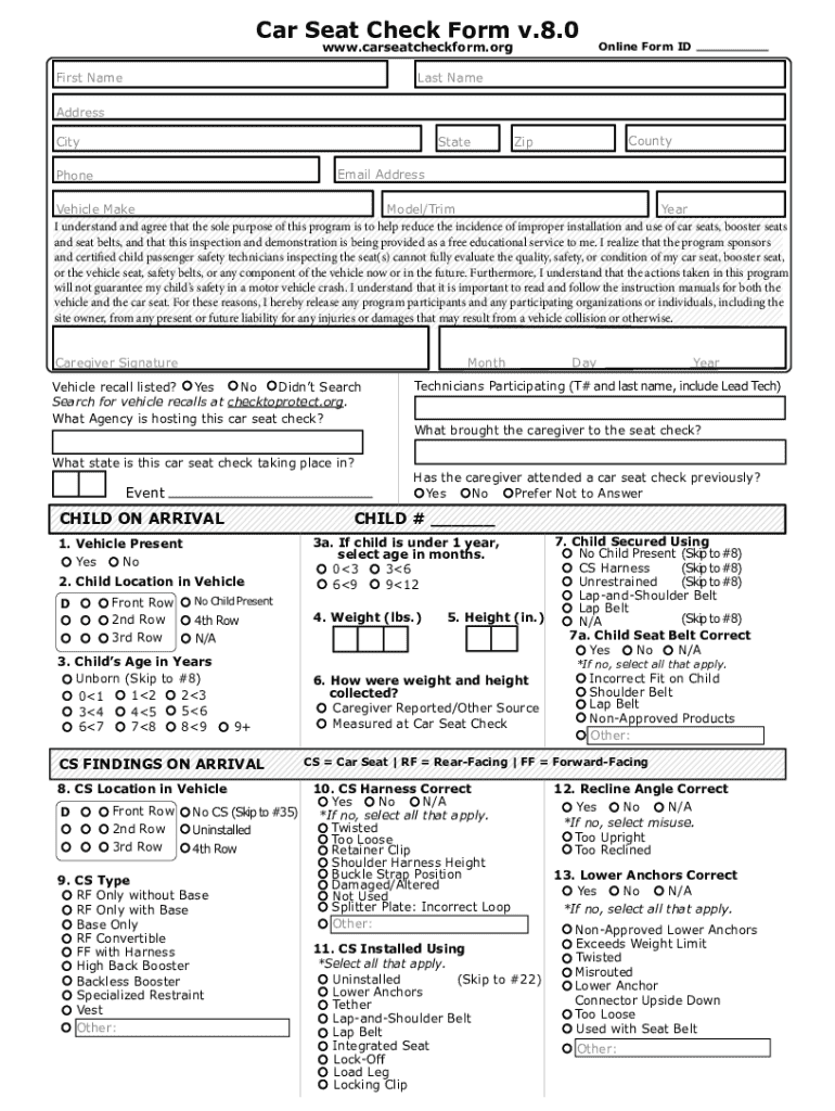 Get the free Car Seat Check Form