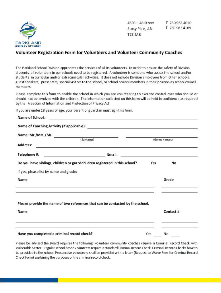Get the free Volunteer Registration Form