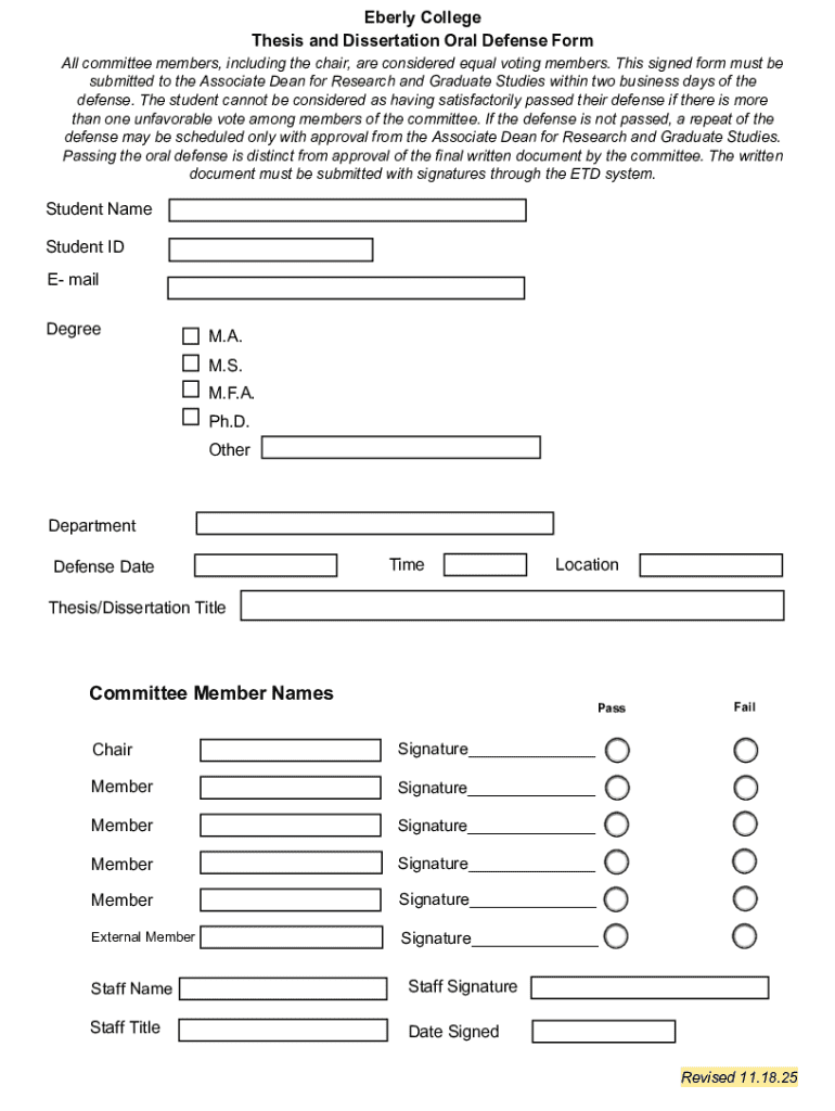 Get the free Thesis and Dissertation Oral Defense Form