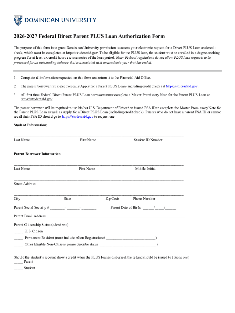 Get the free Federal Direct Parent PLUS Loan Authorization Form