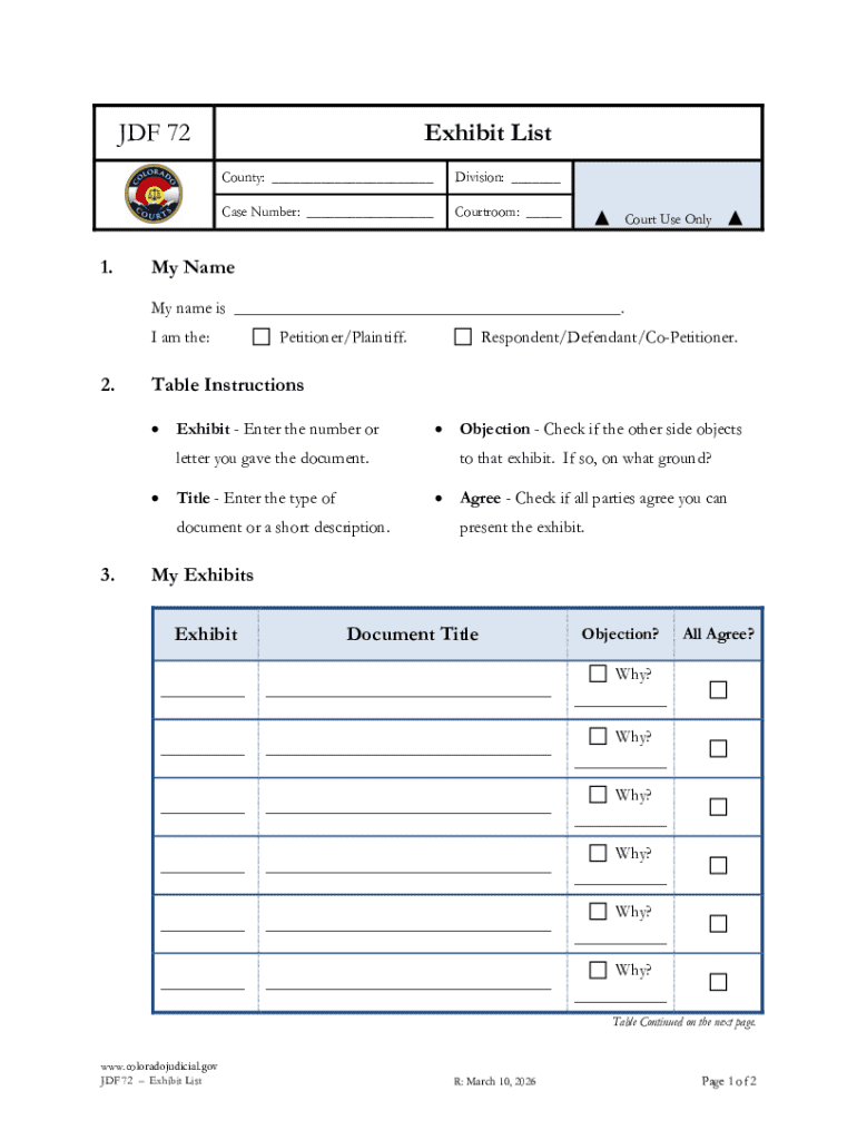 Get the free Colorado Court Exhibit List Form