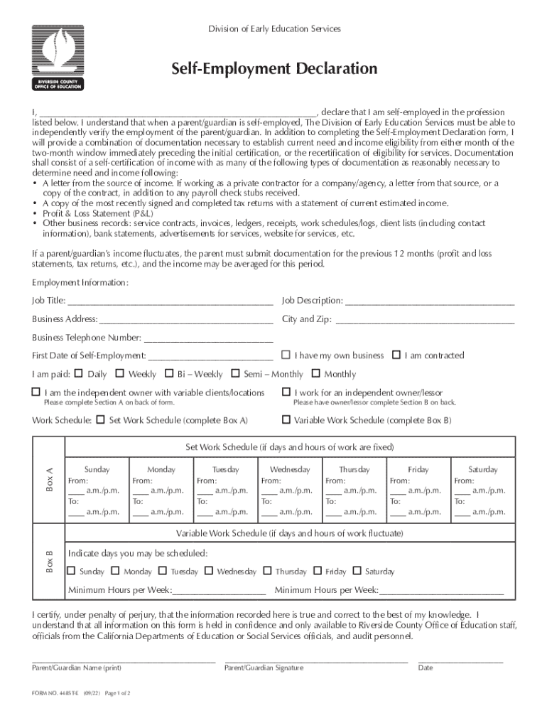 Any individual who is self-employed, including freelancers, contractors, and business owners can fill out this form to declare their self-employment status.