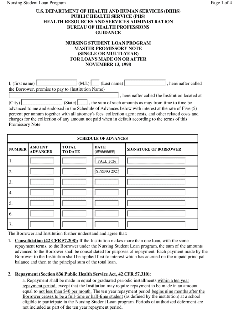 Get the free Nursing Student Loan Program Master Promissory Note
