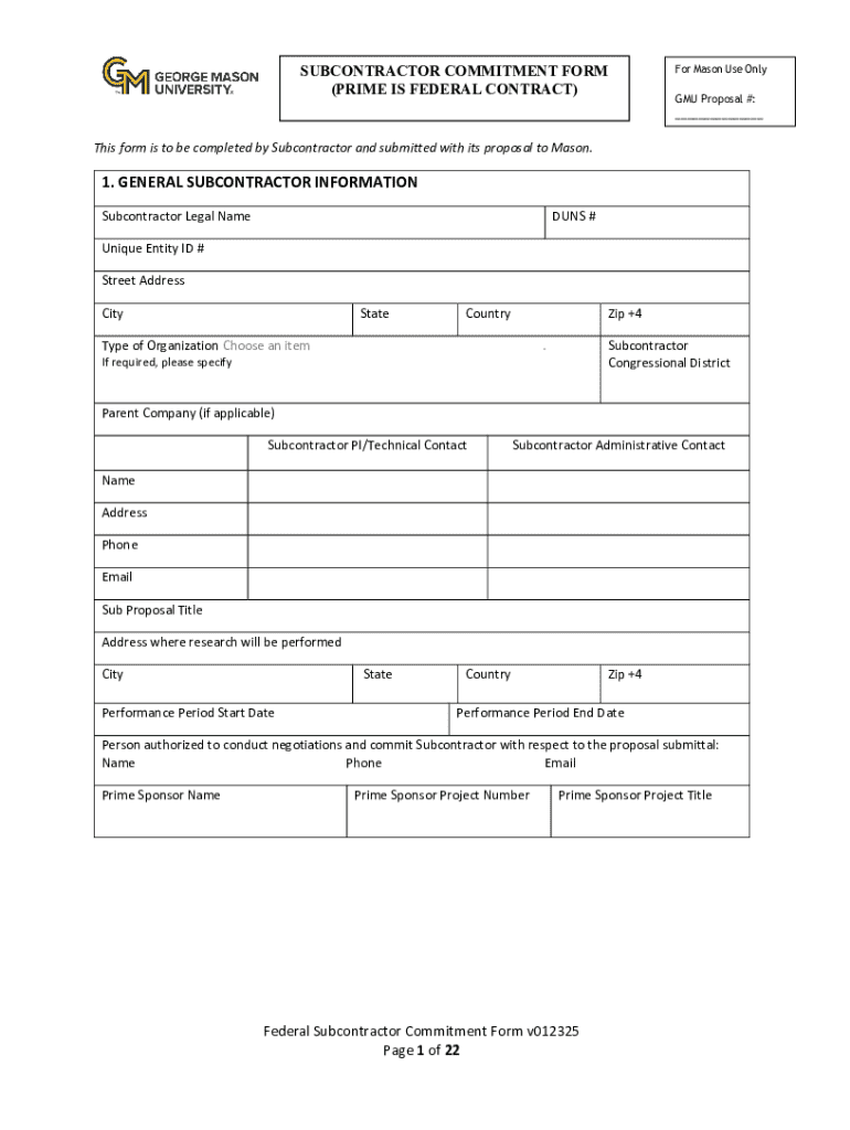 The federal subcontractor commitment form includes several essential features that facilitate compliance and clarity. Key sections typically found in the form are: