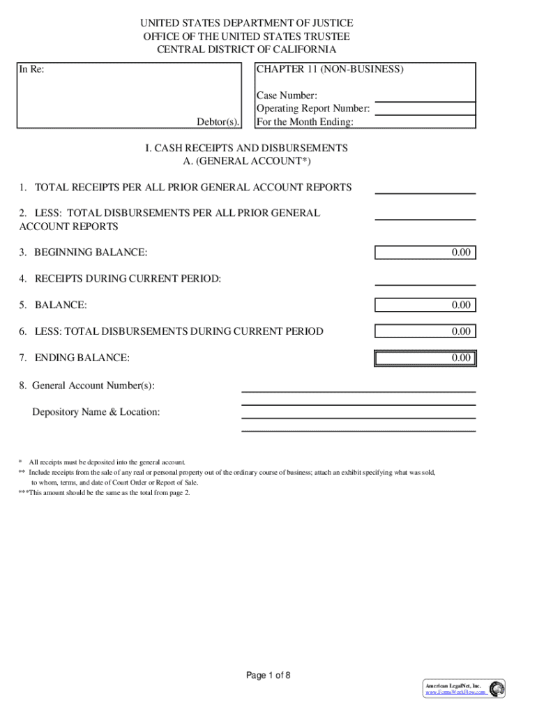 Get the free Chapter 11 Non-Business Operating Report