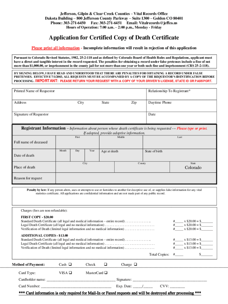 Fees, Deadlines, and Processing Time for the Colorado Death Certificate Application