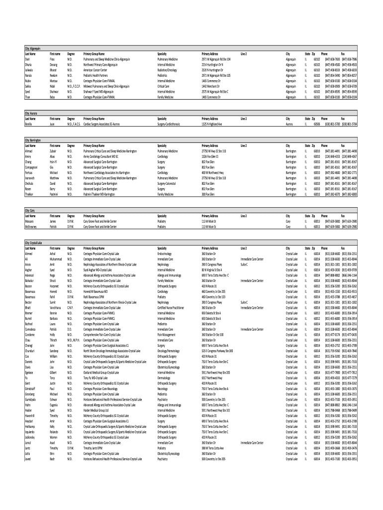 City: Algonquin Last Name Data Dharma Railway Paula Rubio Hakka Syed Than First name FIRAS Demand Bharat Née lam Marissa Tidal Shah war Baby Degree M.D. M.D. M.D. M.D. M.D. M.D., F.C.C.P. M.D. M.D.