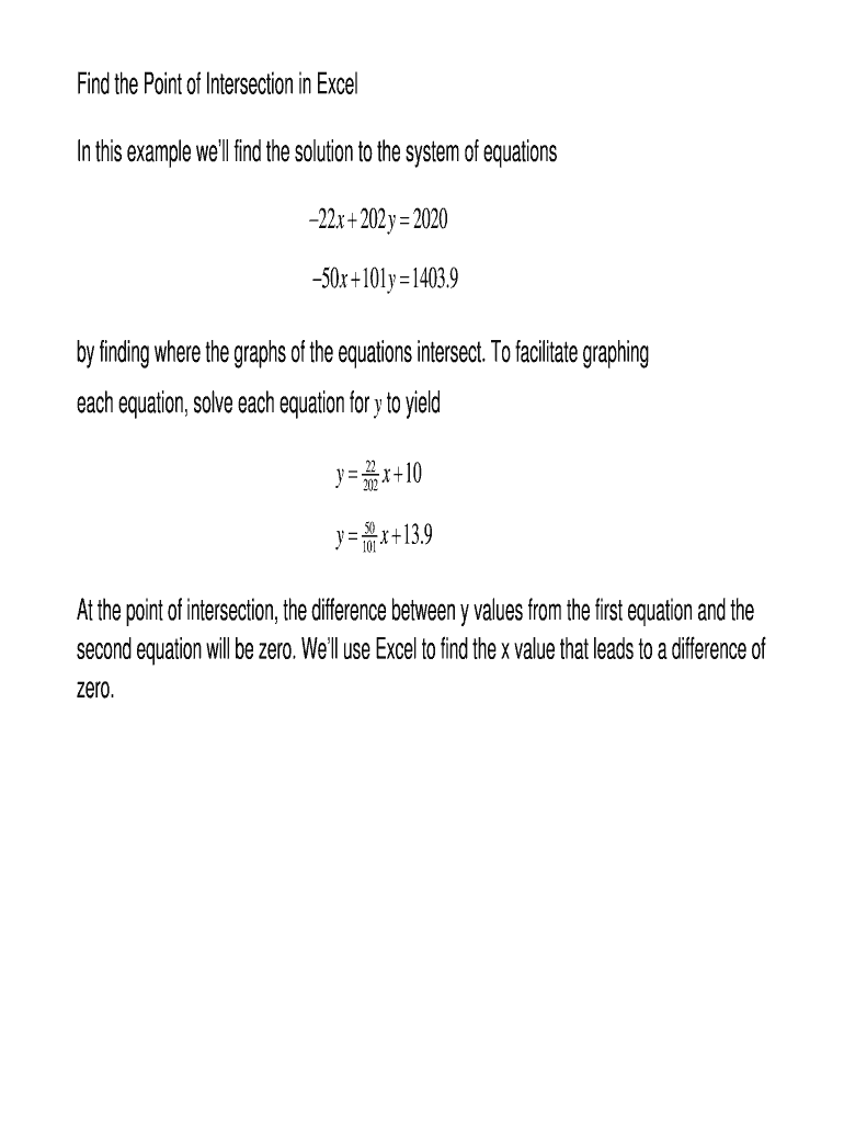 Find the Point of Intersection in Excel In this example well find the solution to the system of equations22 x 202 y 2020 50 × 101y 1403.9 by finding where the graphs of the equations intersect. To