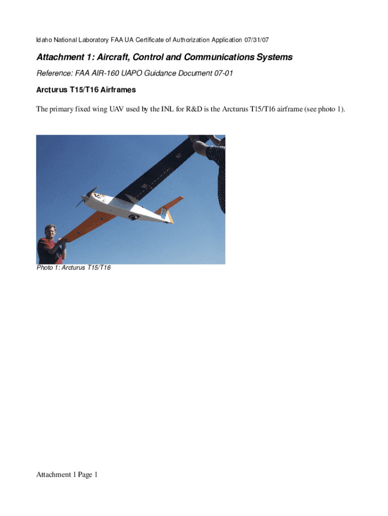 Idaho National Laboratory FAA UA Certificate of Authorization Application 07/31/07Attachment 1: Aircraft, Control and Communications Systems Reference: FAA AIR160 CAPO Guidance Document 0701 Arcturus