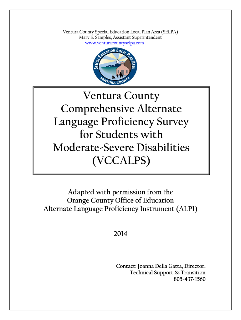 CA Comprehensive Alternate Language Proficiency Survey for Students with Moderate-Severe Disabilities - Ventura County Form Versions