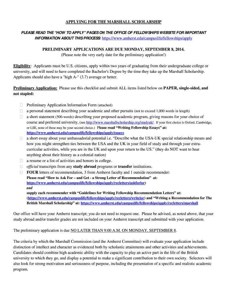 Get the free Applying for the marshall scholarship - Amherst College - amherst