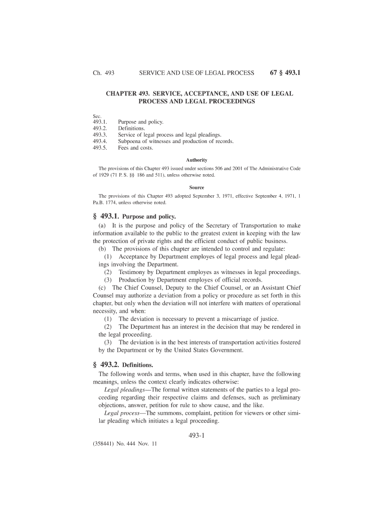 Ch. 493SERVICE AND USE OF LEGAL PROCESS67 493.1CHAPTER 493. SERVICE, ACCEPTANCE, AND USE OF LEGAL PROCESS AND LEGAL PROCEEDINGS Sec.493.1. 493.2. 493.3. 493.4. 493.5. Purpose and policy. Definitions.
