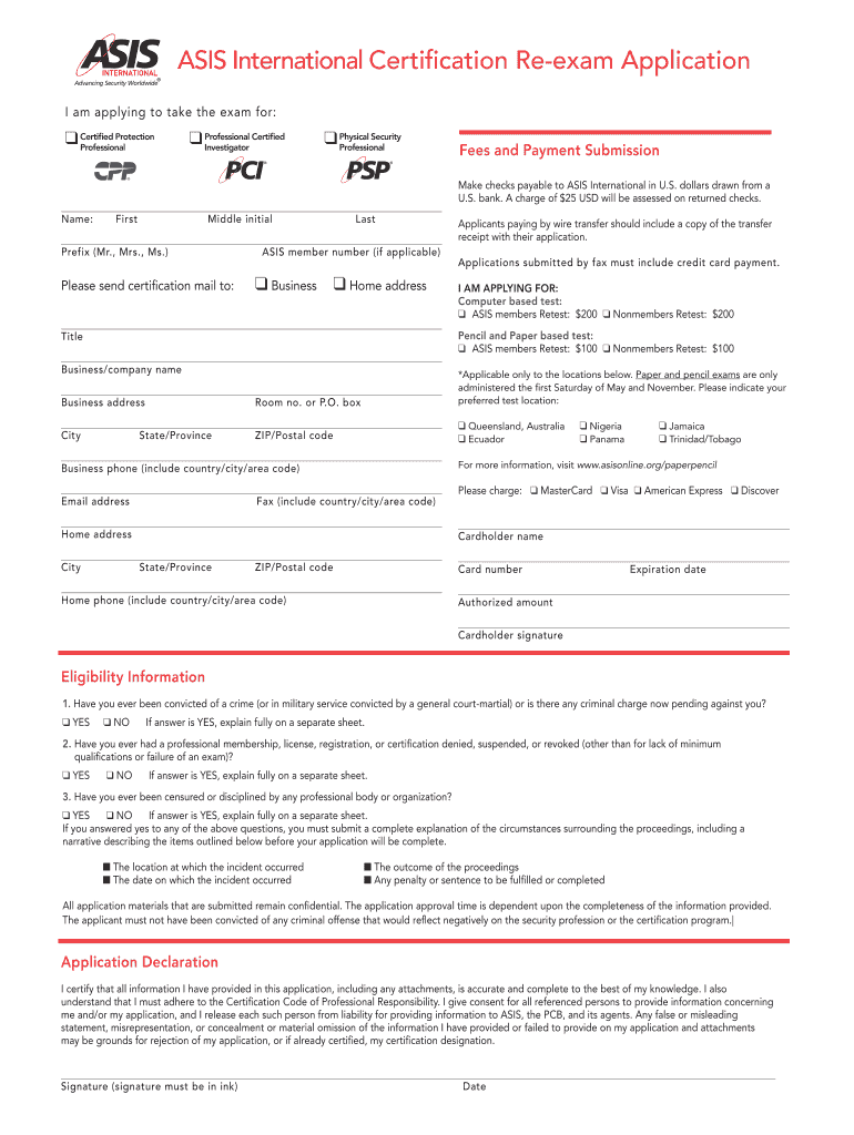 Get the free Re-examination form - ASIS International - asisonline