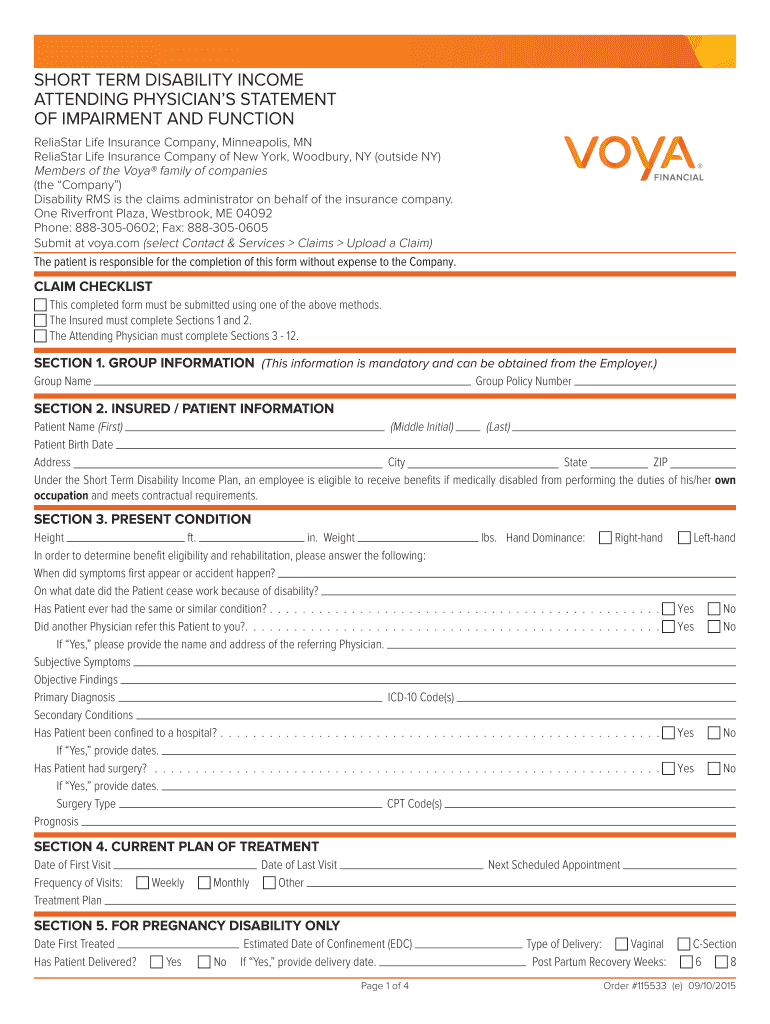 Get the free Form 115533 For Short Term Disability group policies issued in all