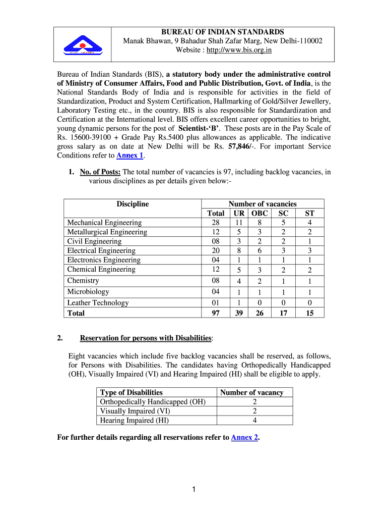 Get the free Detail Advertisement - Bureau of Indian Standards - bis org