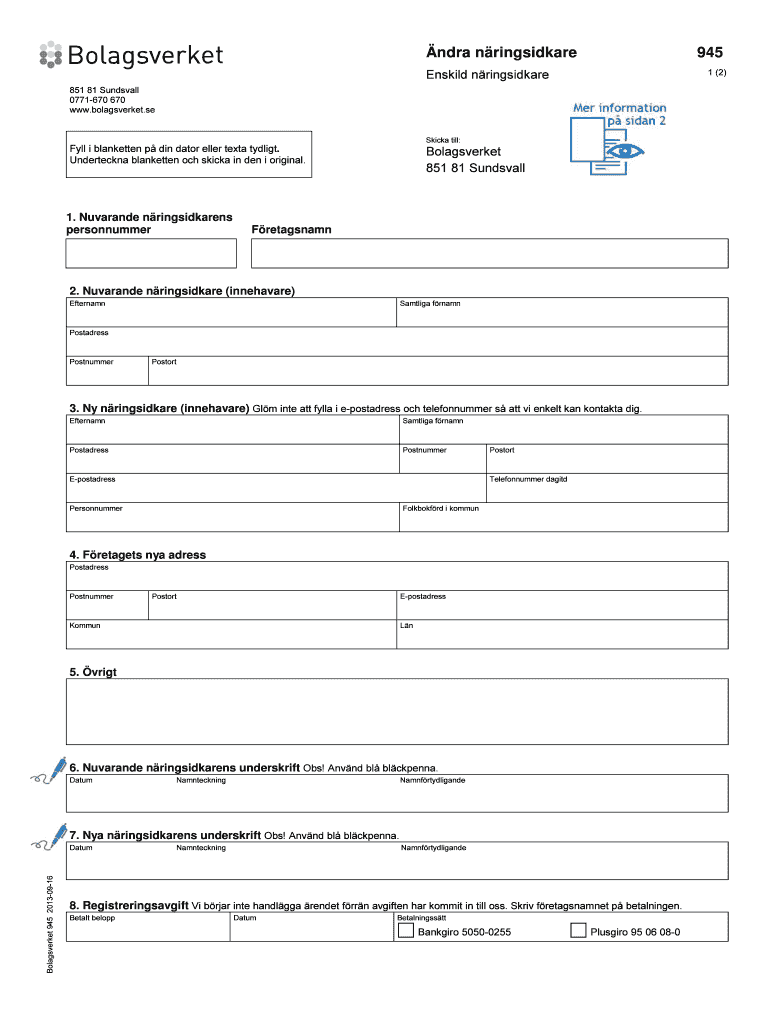 Indra nringsidkare 945 ENSIL nringsidkare 1 (2) 851 81 Sundial 0771670 670 www.bolagsverket.se Kick till: Fall I blanket ten p din gator elder text cyclist. Underteckna blanket ten och kick in den