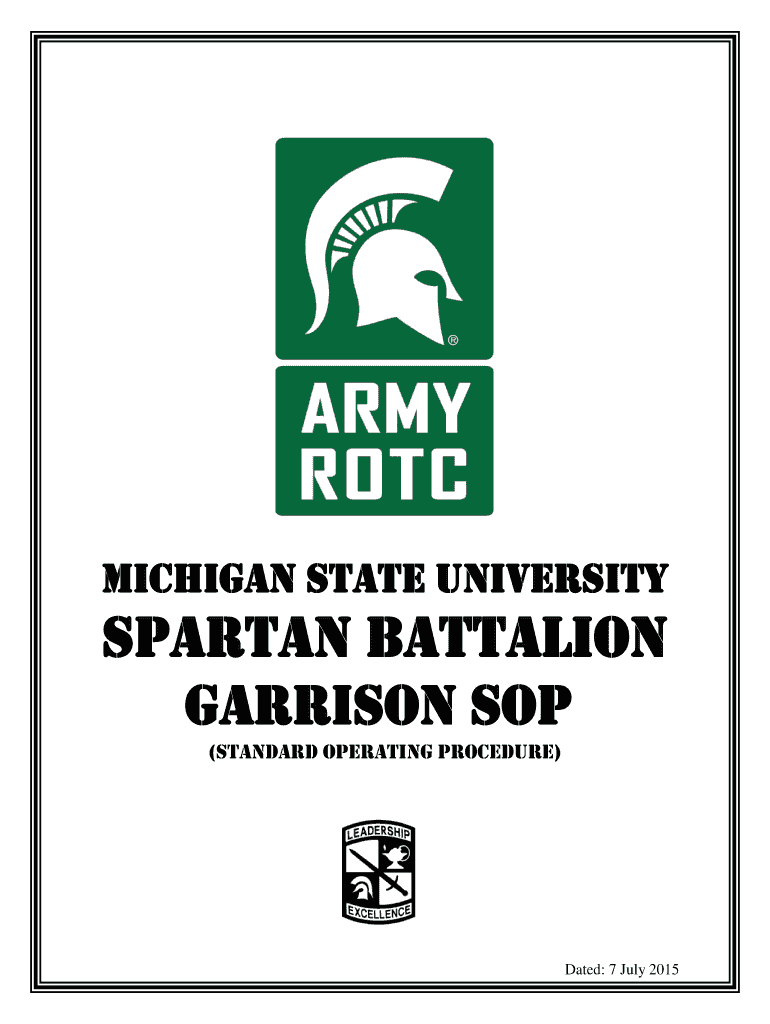 Michigan State University Spartan Battalion Garrison SOP (Standard Operating Procedure) Dated: 7 July 2015 TABLE OF CONTENTS INTRODUCTION AND MISSION ...............................................................................................1