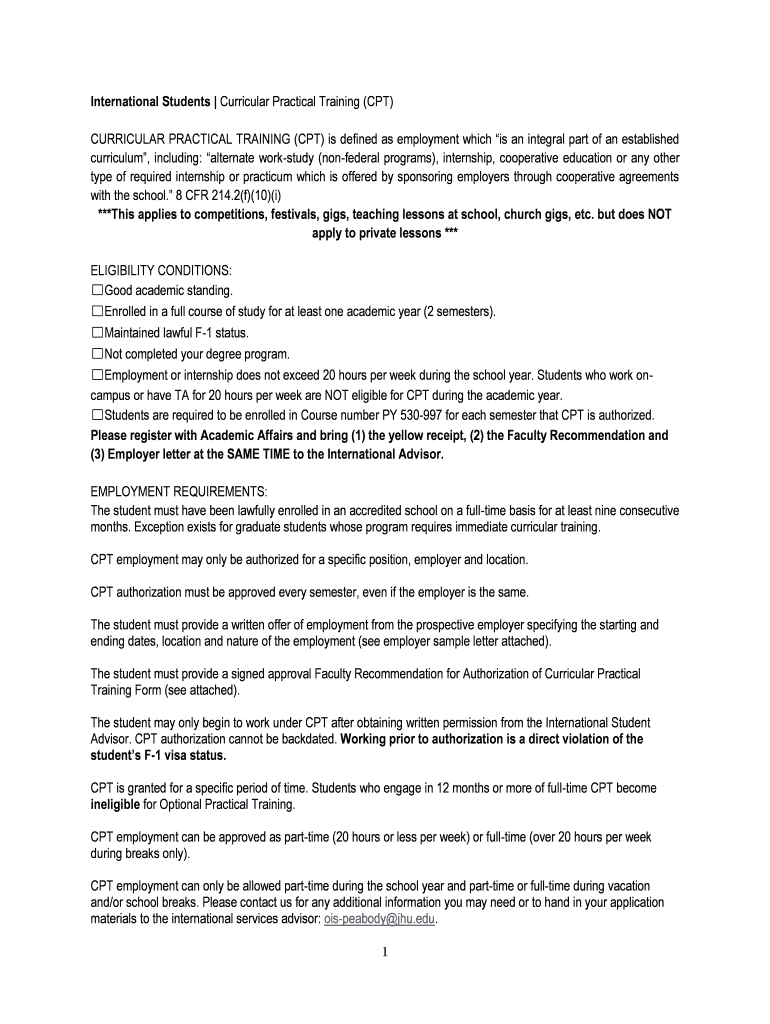 Get the free 1 International Students Curricular Practical Training CPT - peabody jhu