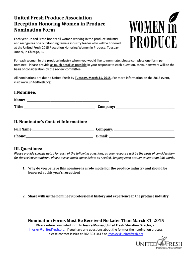 Get the free Nomination bFormb - United Fresh Produce Association - unitedfresh
