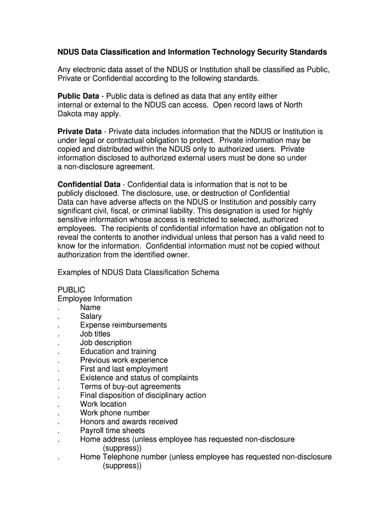 Get the free NDUS Data Classification and Information Technology Security Standards