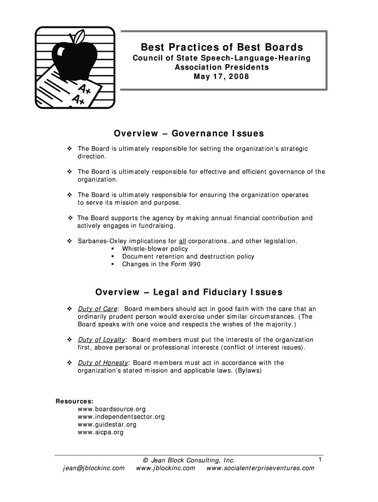Get the free Best Practices of Best Boards - Council of State Association Presidents - csap