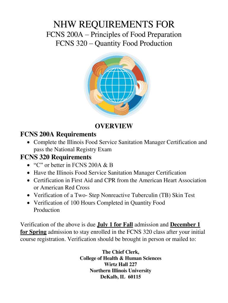 NEW REQUIREMENTS FOR FANS 200A Principles of Food Preparation FANS 320 Quantity Food Production OVERVIEW FANS 200A Requirements Complete the Illinois Food Service Sanitation Manager Certification