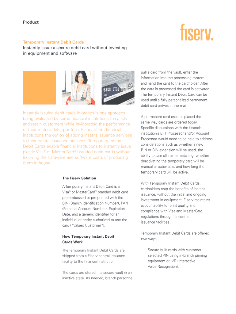 Temporary instant debit cards are instant debit cards that are issued to customers for temporary use until their permanent debit cards arrive in the mail.