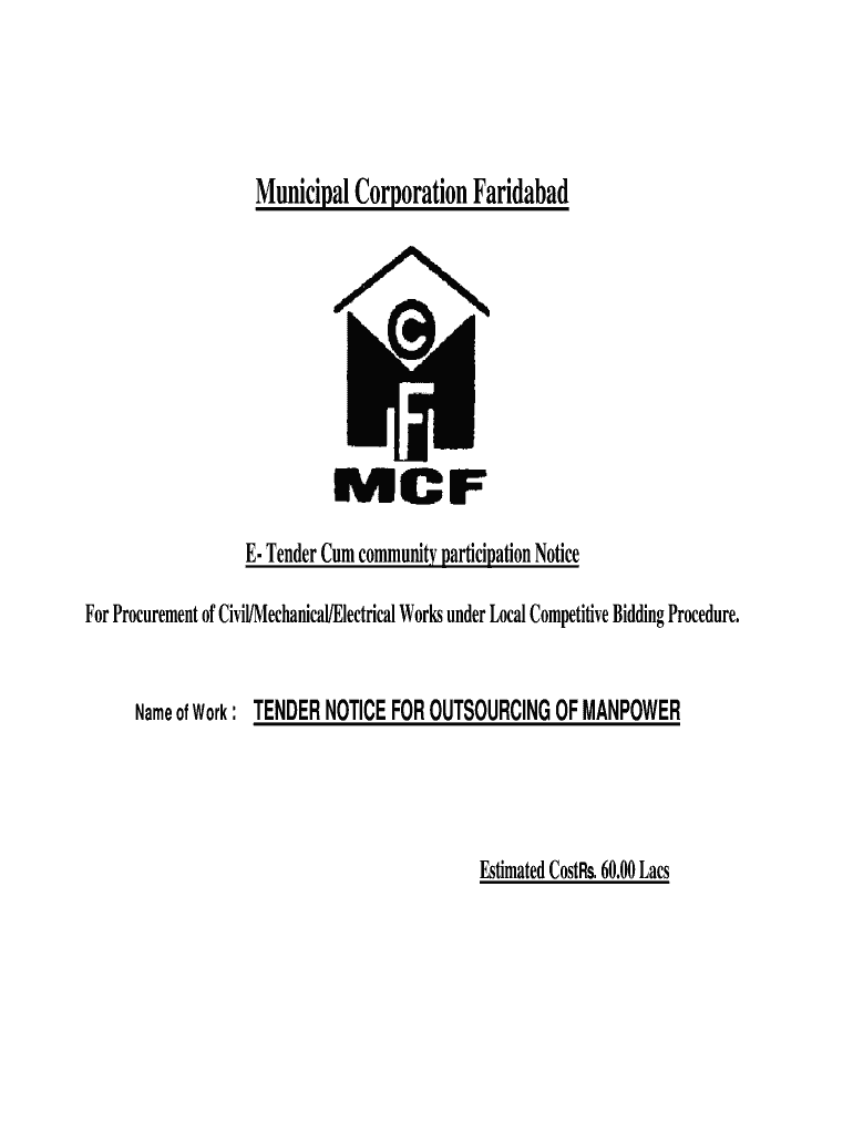 Get the free Name of Work : TENDER NOTICE FOR OUTSOURCING OF MANPOWER Estimated CostRs - mcfbd et...