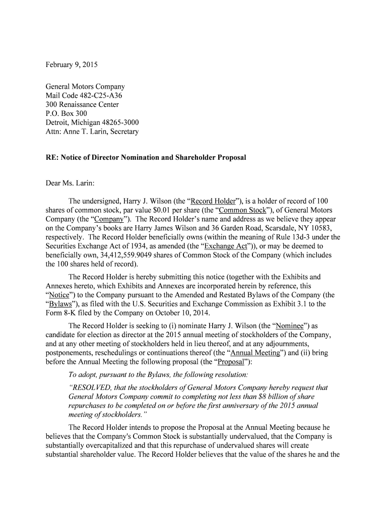 Get the free Notice of Director Nomination and Shareholder Proposal Notice of Director Nomination...