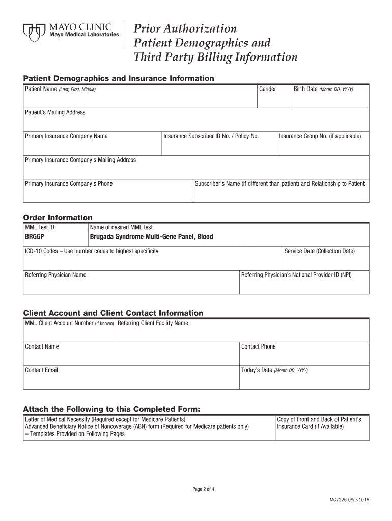 Please complete, print and submit. Reset Form Brigade Syndrome Multi Gene Panel Prior Authorization Ordering Instructions Mayo Medical Laboratories is pleased to offer prior authorization services