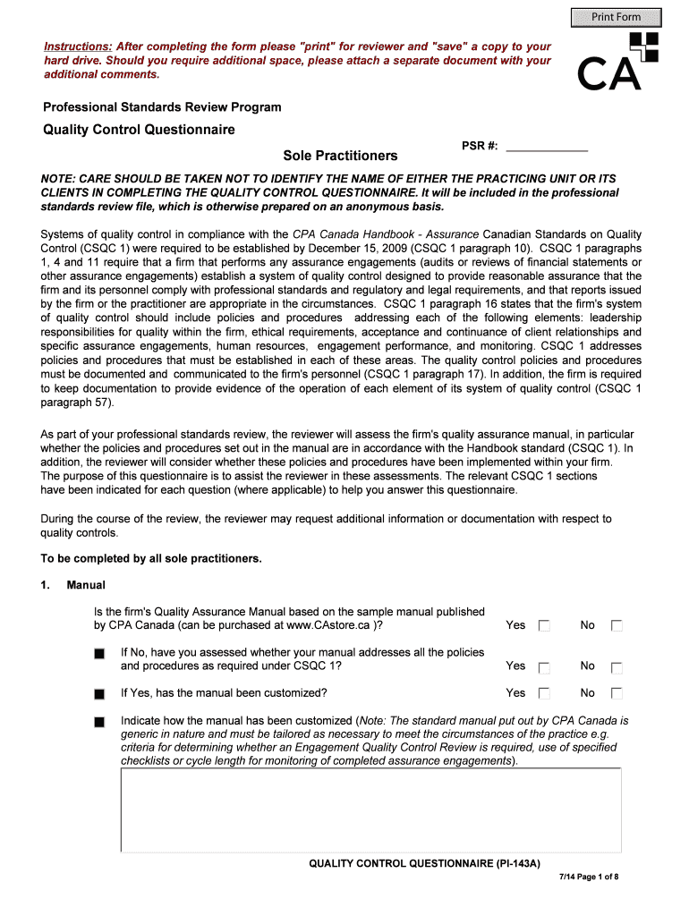 The qc questionnaire - sole is a form completed by sole proprietors to report information about their qualifications and experience in a particular field.